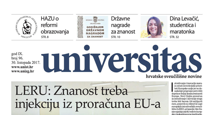 Hrvatske sveučilišne novine Universitas zajednički su medijski projekt Sveučilišta u Zagrebu i Sveučilišta u Splitu. Universitas obrađuje teme iz područja znanosti, visokoga obrazovanja i kulture, a izlazi jednom mjesečno kao posebni prilog u Jutarnjem listu, Slobodnoj Dalmaciji, Novome listu (zadnjega ponedjeljka u mjesecu) i Večernjem listu (zadnjega utorka u mjesecu).