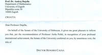 Akademik Andrej Dujella dobio počasni doktorat Sveučilišta u DebrecenuAkademik Dujella dugogodišnji je profesor na Prirodoslovno-matematičkom fakultetu Sveučilišta u Zagrebu, a njegovo glavno područje rada je teorija brojeva. više