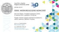 XXIII. Međureligijski koncertOvogodišnji Međureligijski koncert održat će se u Hrvatskom glazbenom zavodu u četvrtak 6. prosinca 2018. s početkom u 20 sati. Organizator je Sveučilište u Zagrebu s programom 'Universitas Cantat'. više