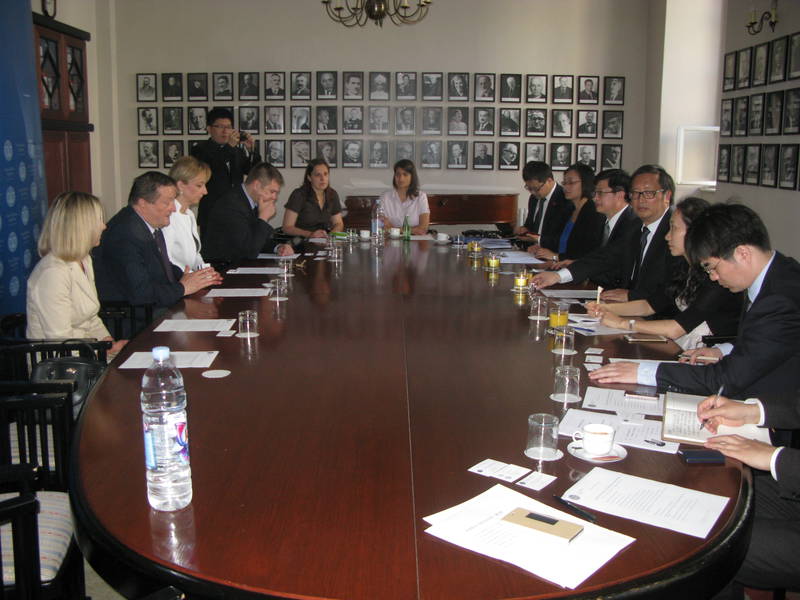 Delegaciju kineskoga Instituta činili su: dr. sc. Yang Jieman, šef delegacije, predsjednik emeritus Long Jing, pomoćnik direktora Centra za Europske Studije, dr. sc. Tong Liqun, znanstveni novak Centra za Europske Studije, dr. sc. Feng Shuai, znanstveni novak Centra za Ruske Studije, dr. sc. Yang Li, znanstveni novak Instituta za obradu podataka i studije i dr. sc. Song Qing, asistent i znanstveni novak Centra za zapadnoazijske i afričke studije.