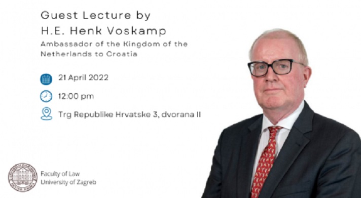 Gostujuće predavanje Nj. E. gospodina Henka Voskampa, veleposlanika Nizozemske u Republici Hrvatskoj, pod nazivom "Soft Power in a Harsh Reality: The EU and the Global Threat to the Rules-Based Order" održat će se u hibridnom obliku u četvrtak 21. travnja u 12 sati.