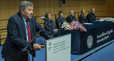 Potpredsjednik vlade Republike Hrvatske i ministar prostornoga uređenja graditeljstva i državne imovine Branko Bačić rekao je da je još prošle godine iz prezentacije dekana zapamtio iznimnu međunarodnu suradnju fakulteta i s to se eminentnim europskim sveučilištima. Time ovaj fakultet drži korak s najpoznatijim institucijama koje u Europi doprinose razvoju građevinske struke. A to Građevinski fakultet pozicionira kao instituciju od iznimne važnosti za trenutnu situaciju u hrvatskome društvu i hrvatskoj državi, istaknuo je Bačić.
