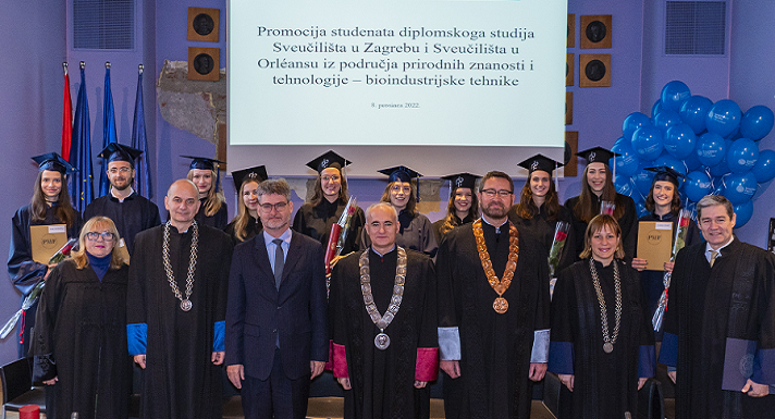 Svečana dodjela diploma studentima diplomskoga studija Sveučilišta u Zagrebu i Sveučilišta u Orléansu iz područja bioindustrije održana je u četvrtak 8. prosinca 2022. godine u 11 sati, u auli Sveučilišta u Zagrebu, Trg Republike Hrvatske 14, Zagreb.
