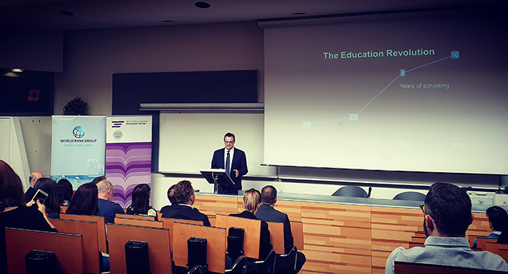 Na Ekonomskom fakultetu Sveučilišta u Zagrebu u ponedjeljak 9. rujna u 11 sati dr. sc. Harry Patrinos, menadžer sektora za obrazovanje u Svjetskoj banci za regiju Europe i središnje Azije, održao je predavanje na temu mjerenja ljudskoga kapitala znanja, tj. vještina koje ljudi usvoje tijekom svojih života.
