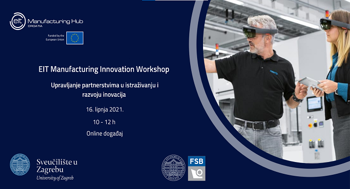 Dana 16. lipnja 2021. od 10 do 12 sati održavat će se EIT Manufacturing Innovation Workshop – Upravljanje partnerstvima u istraživanju i razvoju inovacija, radionica u organizaciji Centra za istraživanje, razvoj i transfer tehnologije Sveučilišta u Zagrebu, zajedno s Fakultetom strojarstva i brodogradnje.