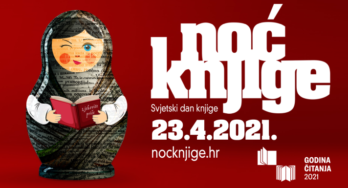 U 2021. godini, koja je proglašena Godinom čitanja, a u povodu Svjetskoga dana knjige i autorskih prava i Dana hrvatske knjige, u petak 23. travnja održat će se 10. Noć knjige. Tema ovogodišnjeg jubilarnog izdanja je Ljekovita moć knjige, moć pisane riječi koja utječe na zdravlje društva i pojedinca, a zaštitno lice pripovjedačica ljekovitih priča - babuška Knjiguška.