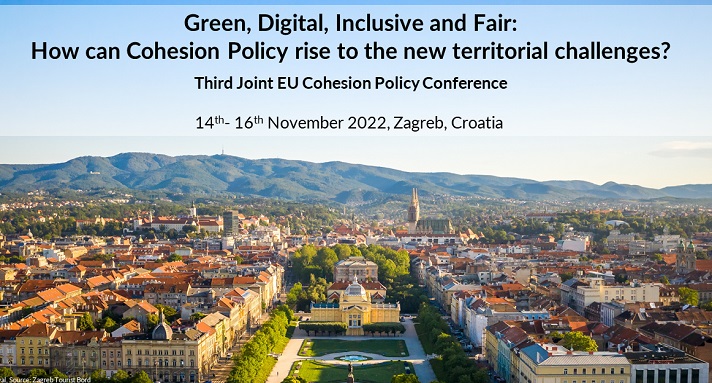 Ministarstvo regionalnoga razvoja i fondova Europske unije zajedno s Europskom komisijom (DG REGIO) i Regional Studies Association (RSA Europe) održat će konferenciju naziva "Treća zajednička konferencija o Kohezijskoj politici EU-a; Zeleno, digitalno, uključivo i pravedno: Kako Kohezijska politika može odgovoriti na nove teritorijalne izazove?", od 14. do 16. studenoga 2022. u Zagrebu.